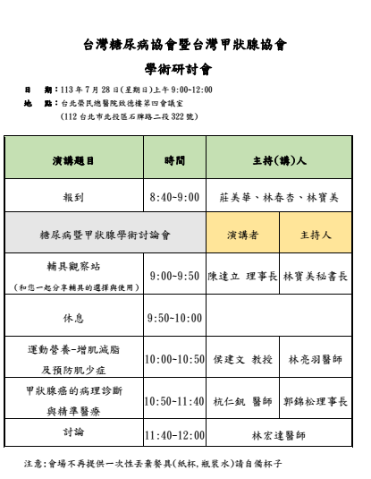 113年台灣糖尿病協會暨甲狀腺協會健康講座~活動日期7月28日 -